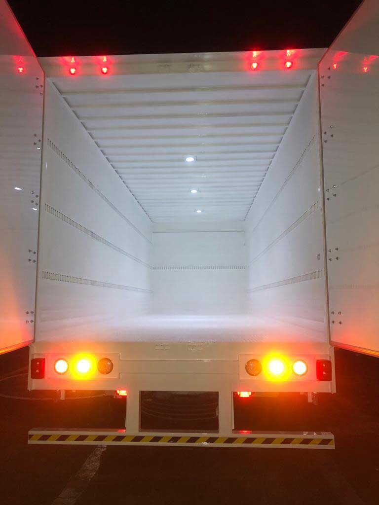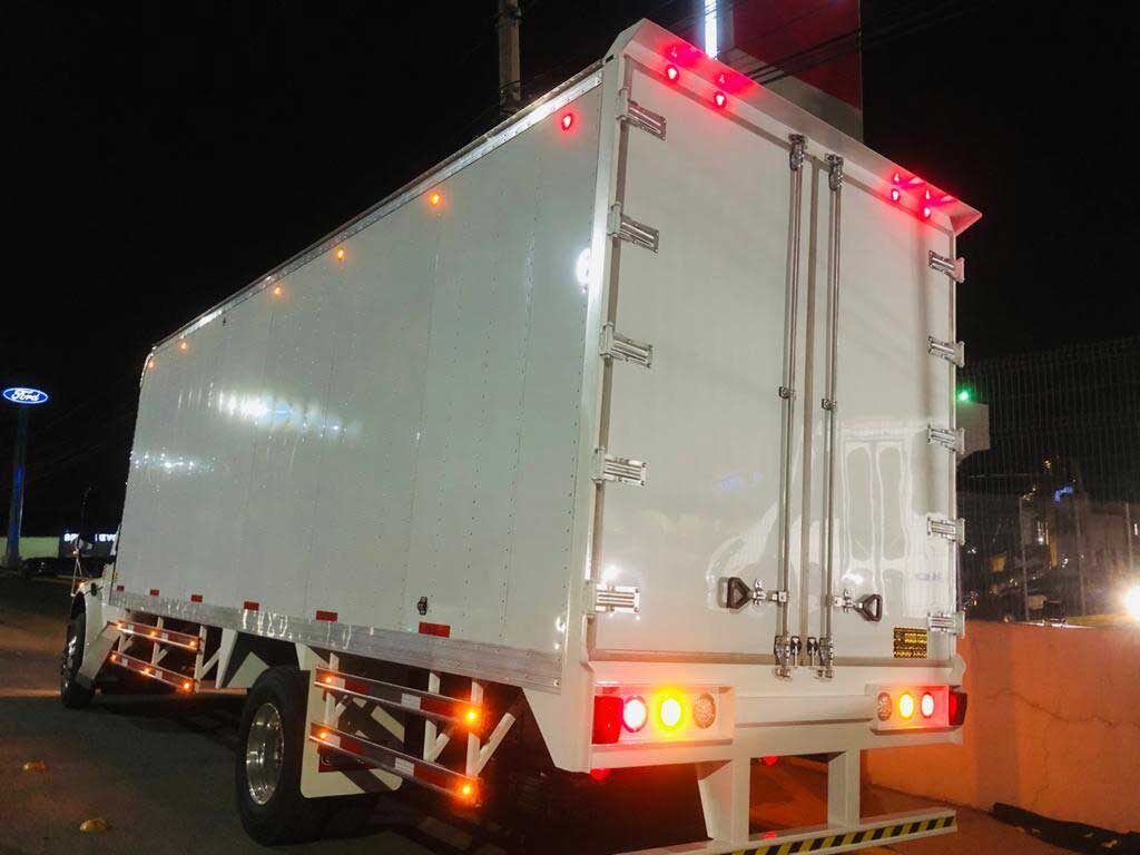 - Diversos aditamentos: Zoclo perimetral anti- impactó, refuerzos laterales y buchacas tipo camión, plafón gel FULL LED cromado y bandas con matraca para sujeción de producto.