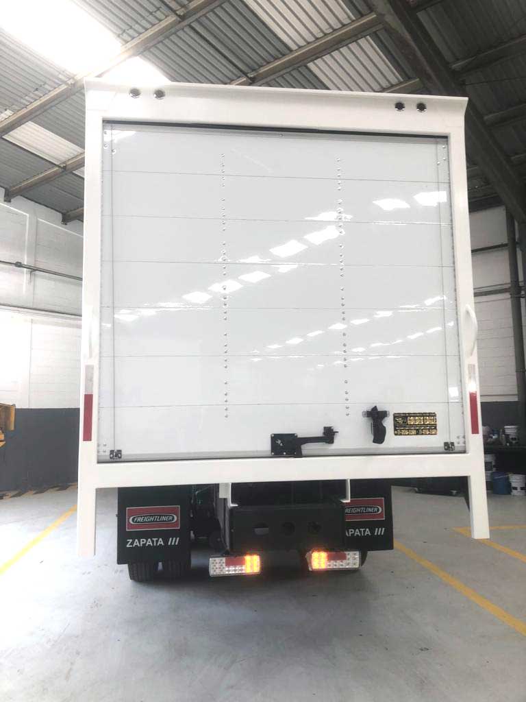 - Diversos aditamentos: Zoclo perimetral anti- impactó, refuerzos laterales y buchacas tipo camión, plafón gel FULL LED cromado y bandas con matraca para sujeción de producto.